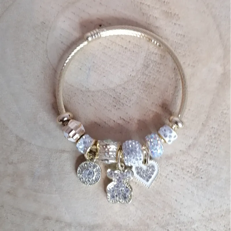 Jonc breloques doré ourson blanc cœur strassé15,00 €★★★★★ Noté 0 sur 5