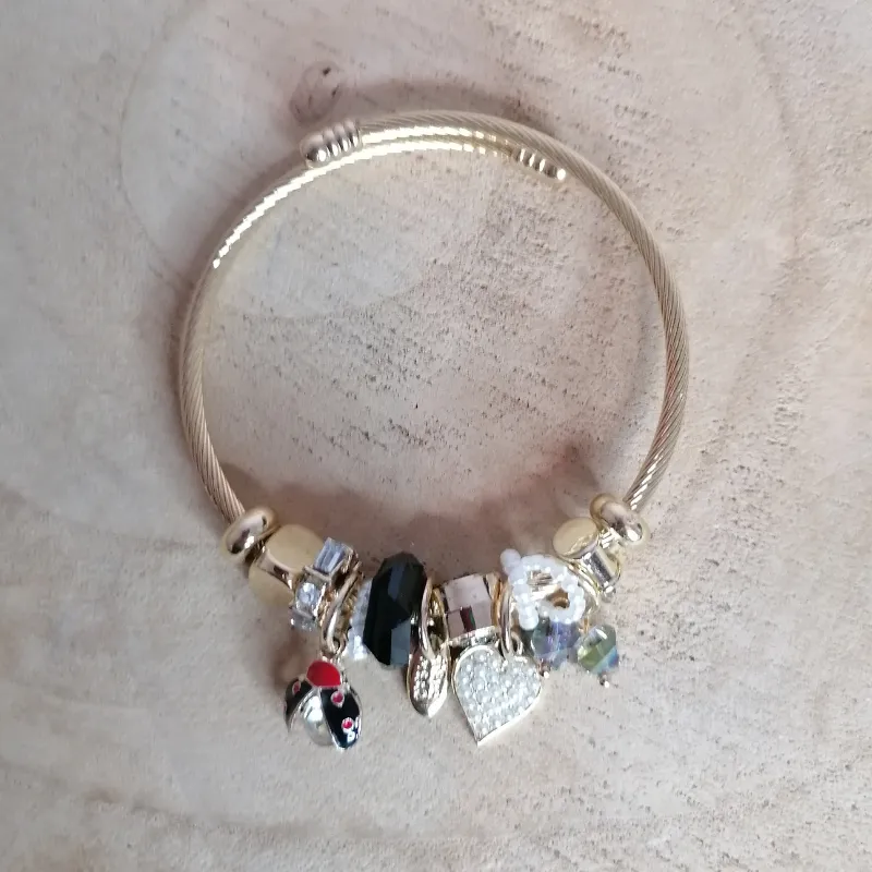 Jonc breloques doré coccinelle et cœur strassé15,00 €★★★★★ Noté 0 sur 5
