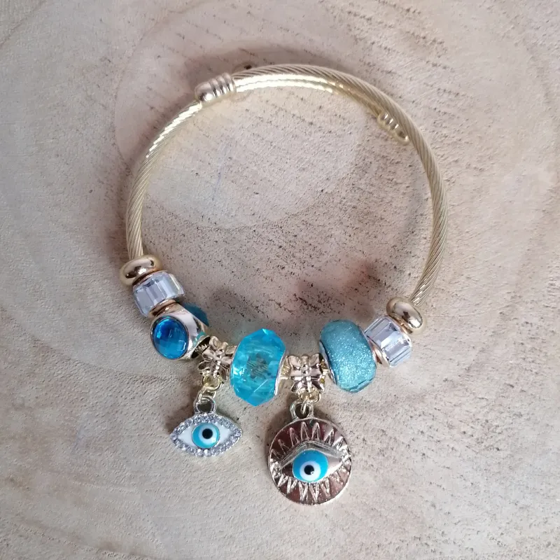 Jonc breloques doré œil Turc de protection bleu roi15,00 €★★★★★ Noté 0 sur 5