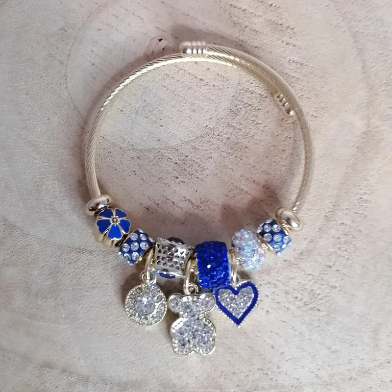 Jonc breloques Doré Ours et Cœur Bleu roi15,00 €★★★★★ Noté 0 sur 5