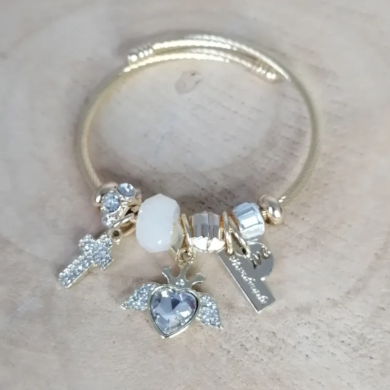 Jonc breloques doré Cœur et Croix blanc15,00 €★★★★★ Noté 0 sur 5