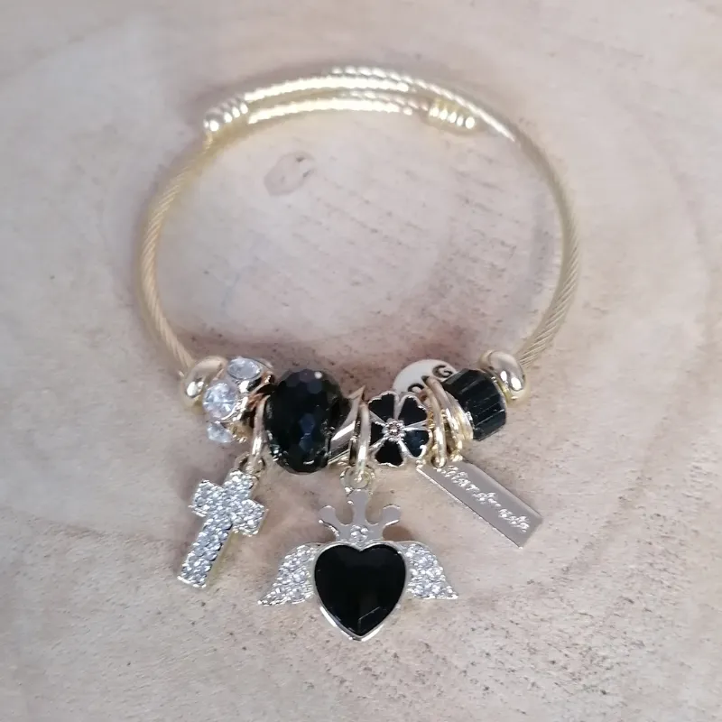 Jonc breloques doré Cœur et Croix Noir15,00 €★★★★★ Noté 0 sur 5