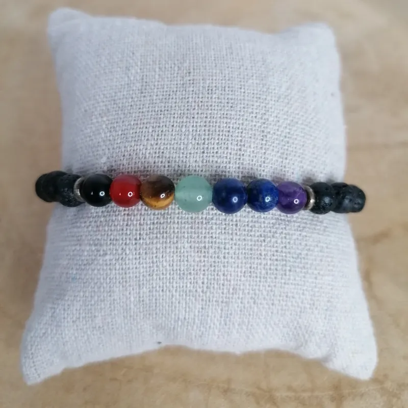 Bracelet 7 chakras en pierre de lave 6mm