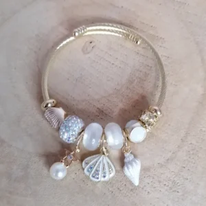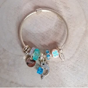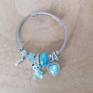 Bracelet jonc en acier chirurgical. Les breloques sont en métal.