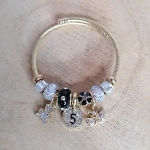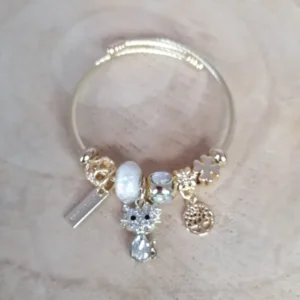 Bracelet jonc en acier chirurgical. Les breloques sont en métal.